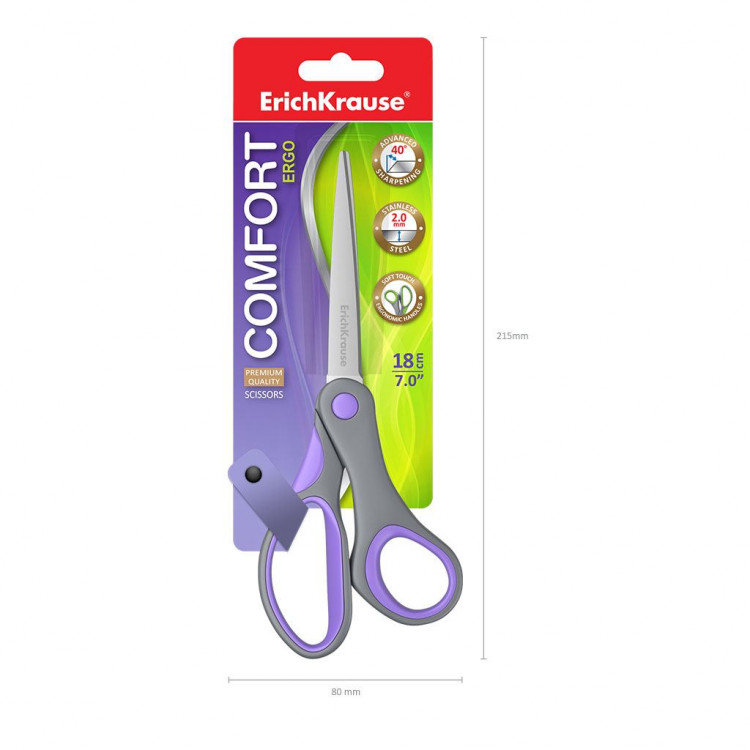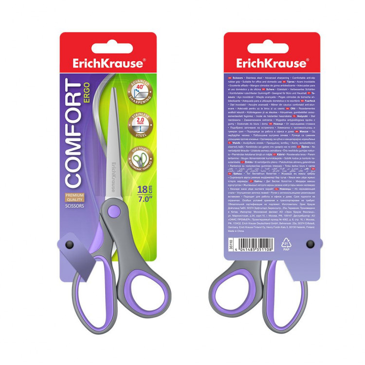 Ножиците 18см Комфорт Erich Krause нудат ергономски дизајн и остри сечила за прецизно сечење, совршени за училиште, канцеларија и домашна употреба.