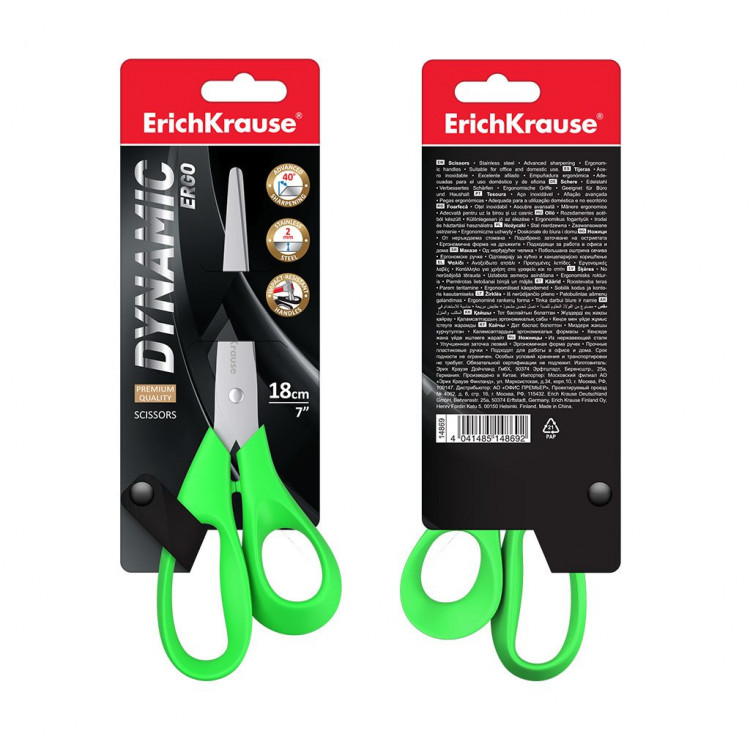 Ножици 18см Динамик Erich Krause – остри, удобни и издржливи за секојдневна употреба дома или во канцеларија.