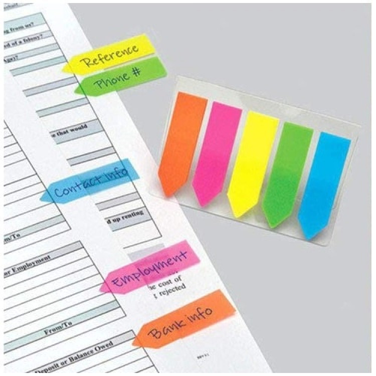 Се лепат сигурно и се отстрануваат без да оставаат траги, овозможувајќи чиста и уредна организација на документацијата. Пакувањето 1/5 овозможува повеќе бои за лесна визуелна категоризација.