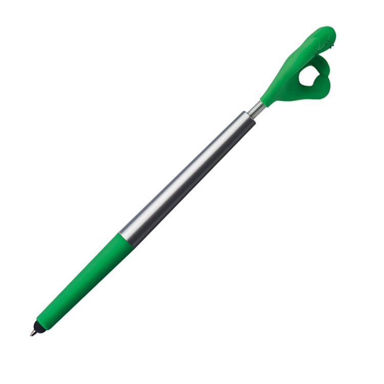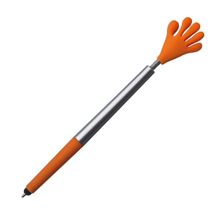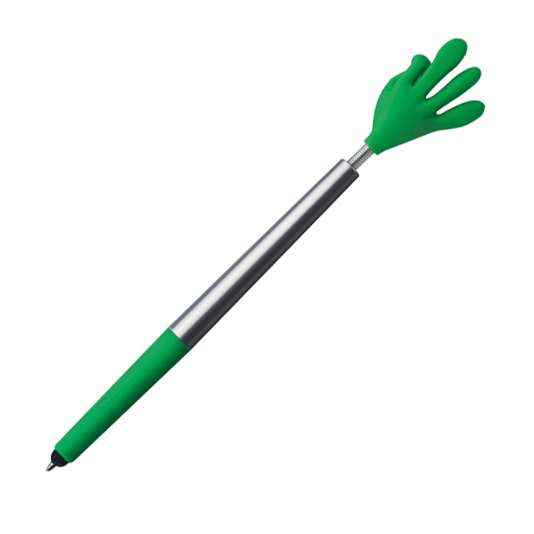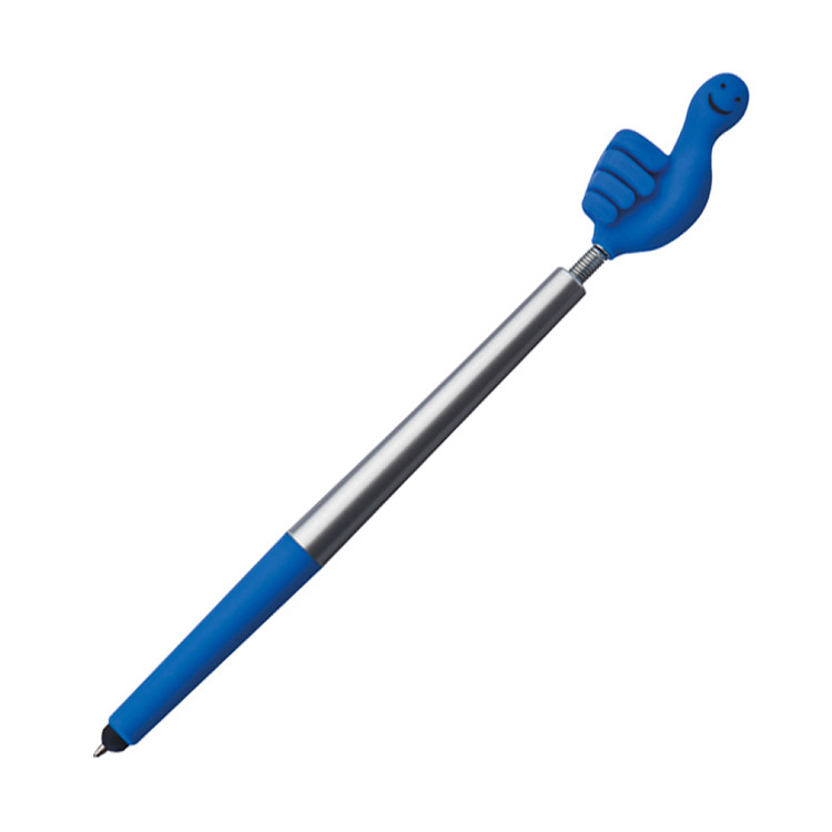Пластичното хемиско пенкало Flexy Smile Hand со функција за пишување со сино мастило и тач за екран. Не е само практична алатка за пишување, туку и забавен и привлечен промотивен предмет