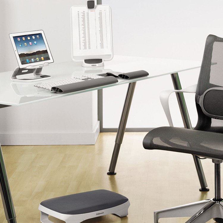 Оваа подлога за таблет ви овозможува да го ставите како во хоризонтална така и во вертикална позиција. Иновативниот дизајн на оваа подлога го издигнува таблетот до 3″ над работната површина. Оваа подлога припаѓа на серијата I-Spire™ од Fellowes®. Со едноставно подигнување на таблетот 3″ над работната површина, можете да избегнете прекумерно оптоварување на вратот и рамената предизвикано од наведнување надолу или нанапред за да го видите екранот. Модерниот дизајн го нагласува секој работен простор без разлика дали е дома или во канцеларија.