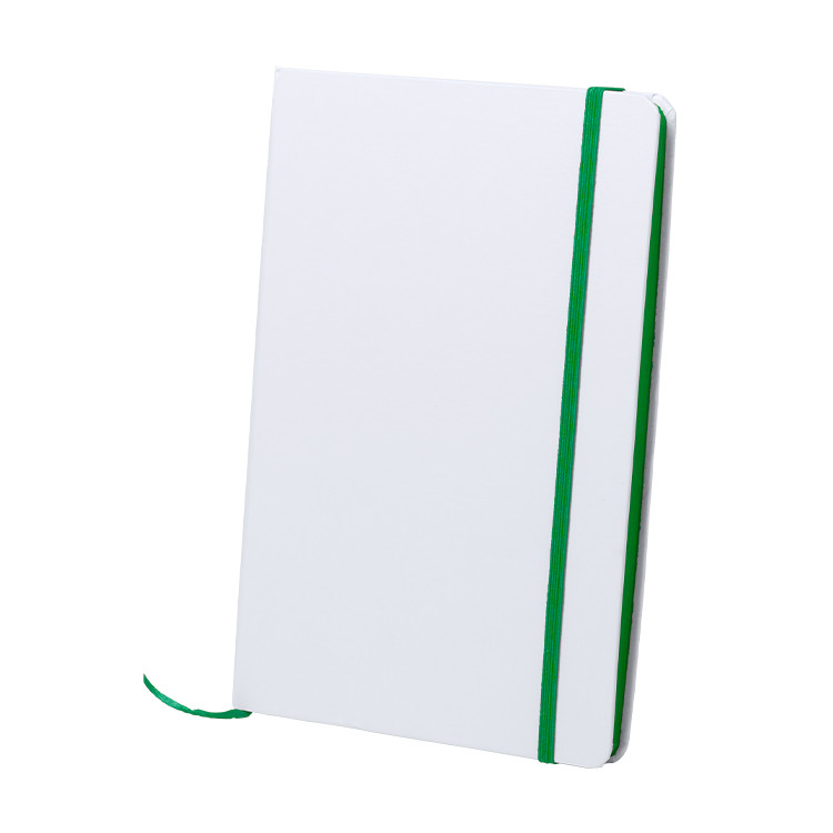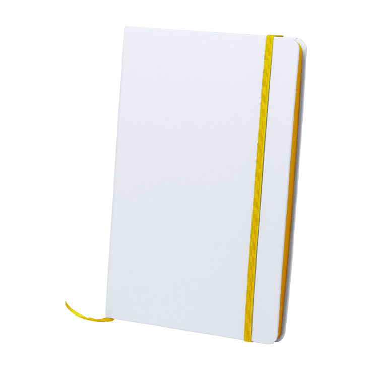 Нотес А5 бел со ластик во боја