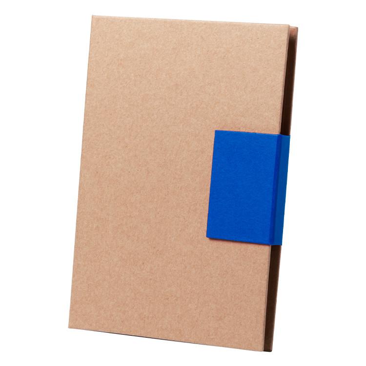 Корица од рециклирана хартија со 50 листа и хемиско пенкало од рециклирана хартија со сино мастило.