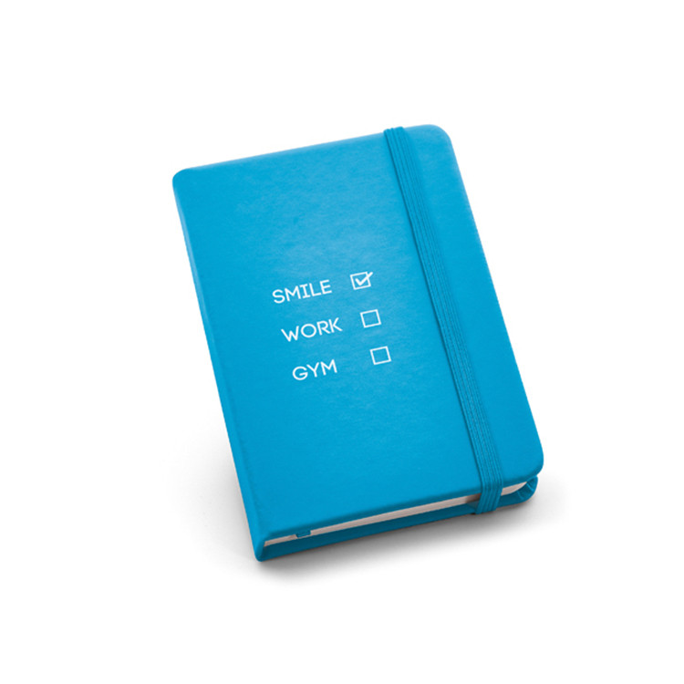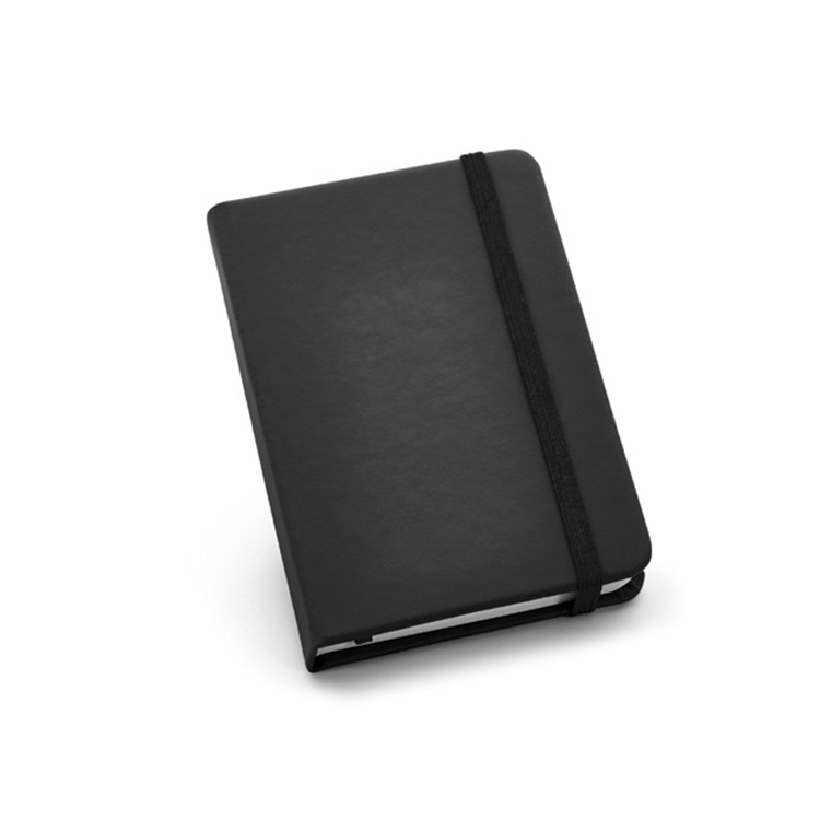 Овој компактен тефтер со тврда корица од имитација на кожа и 80 листови со линии е идеален за секојдневна употреба. Со димензии од 90 x 140 mm, е совршен за пишување белешки кога сте во движење и лесно може да се брендира со вашето лого.
