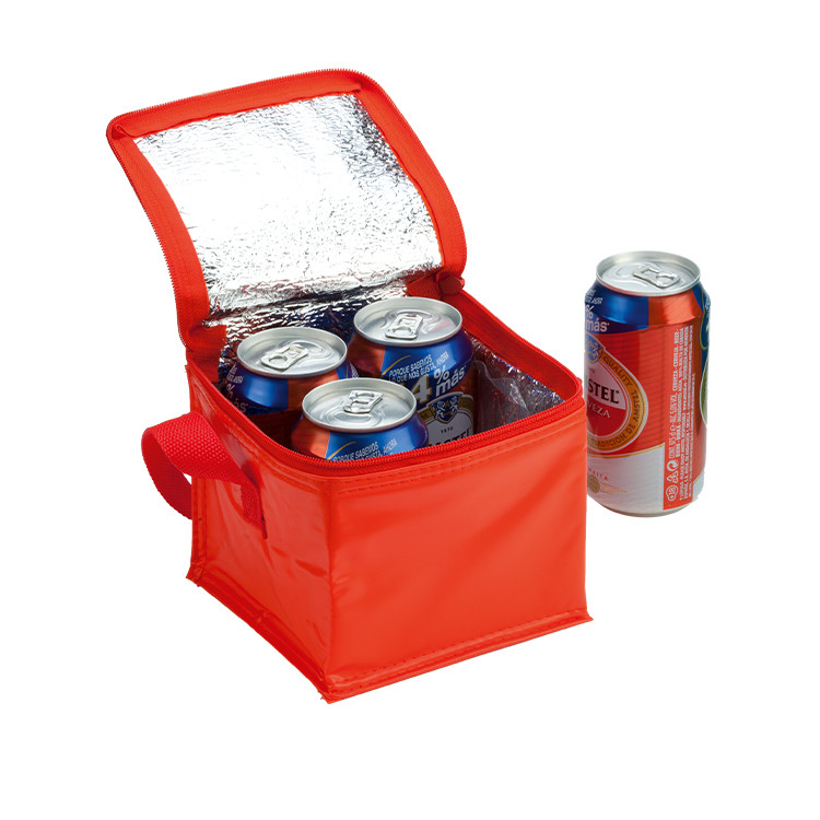 Пвц термо торба со алуминиумска внатрешност, со патент. Собира 4 лименки од 0,33 л.