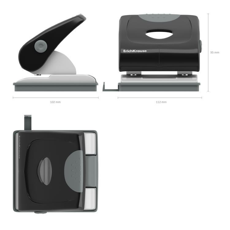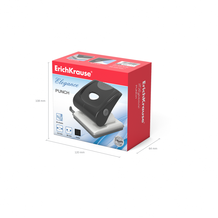 – Елеганс Erich Krause дупчалката има двоен механизам за дупчење со два отвори