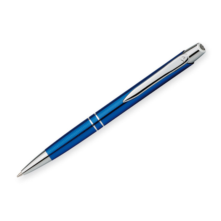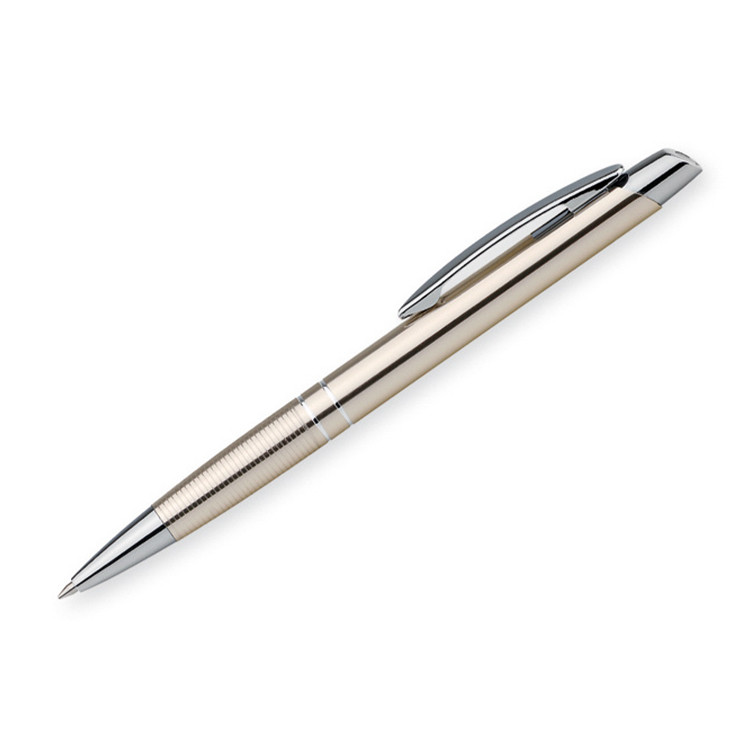 Стилско метално пенкало со сино мастило, идеално за деловна употреба, канцеларии и промотивни активности. Пенкалото е издржливо, елегантно и пoгодно за печатење на вашето лого или персонализација по потреба.