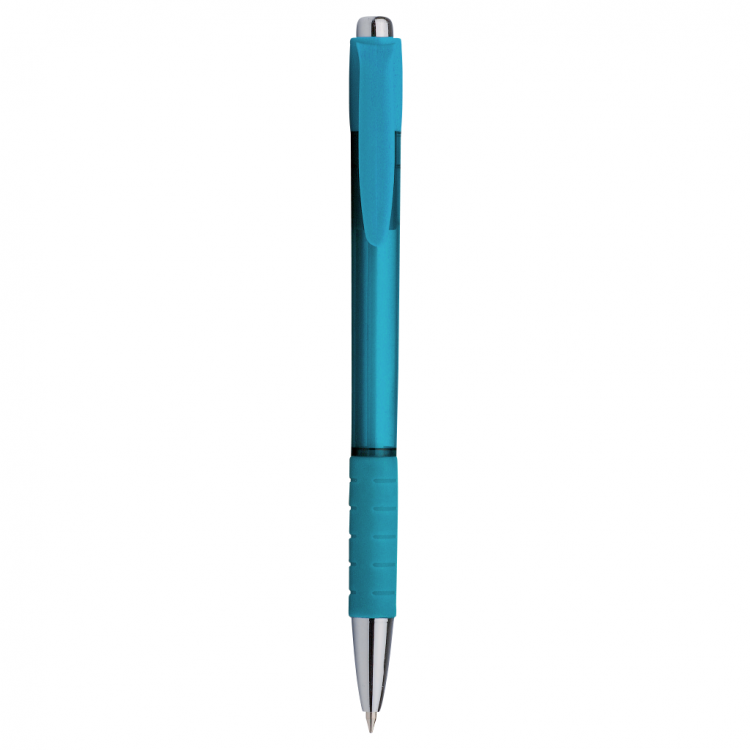 Ова практично пластично пенкало со гумен додаток за пријатно држење и сино мастило е совршен избор за промоција на вашиот бренд.
