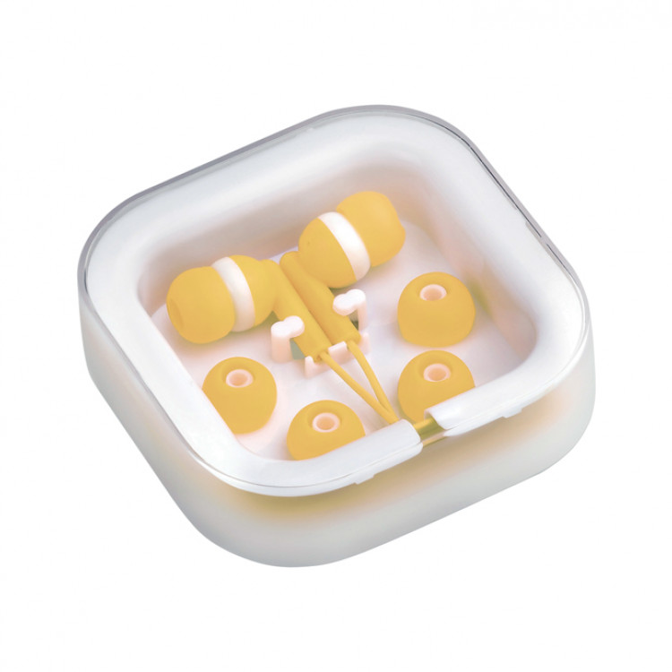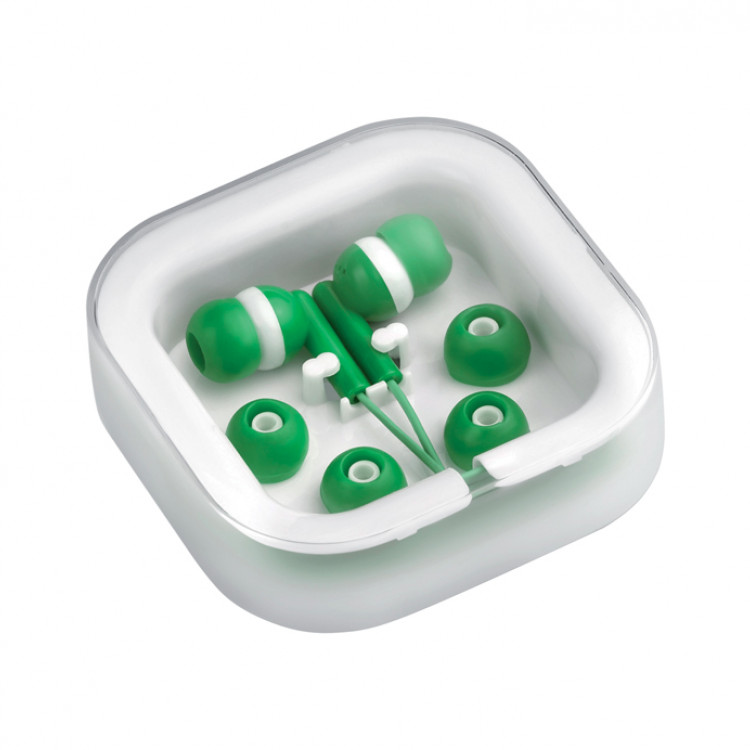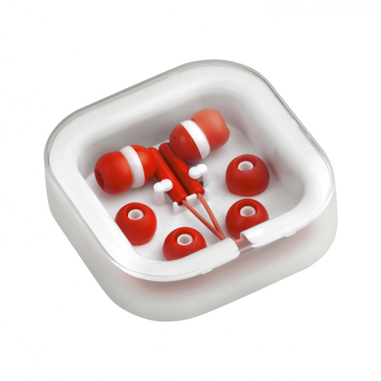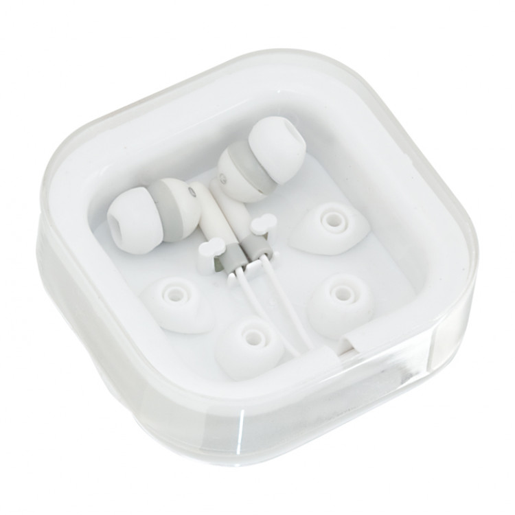 Слушалки со 3,5mm и 3 пара на заменливи гумички во пластично пакување.