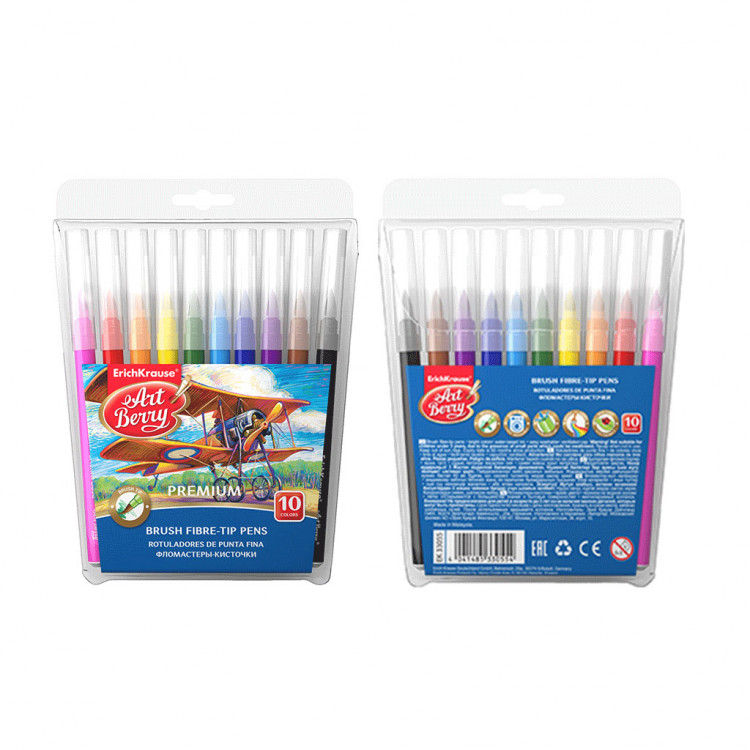 Фломастери со врв во облик на четка ArtBerry® со мастило лесно за перење.
