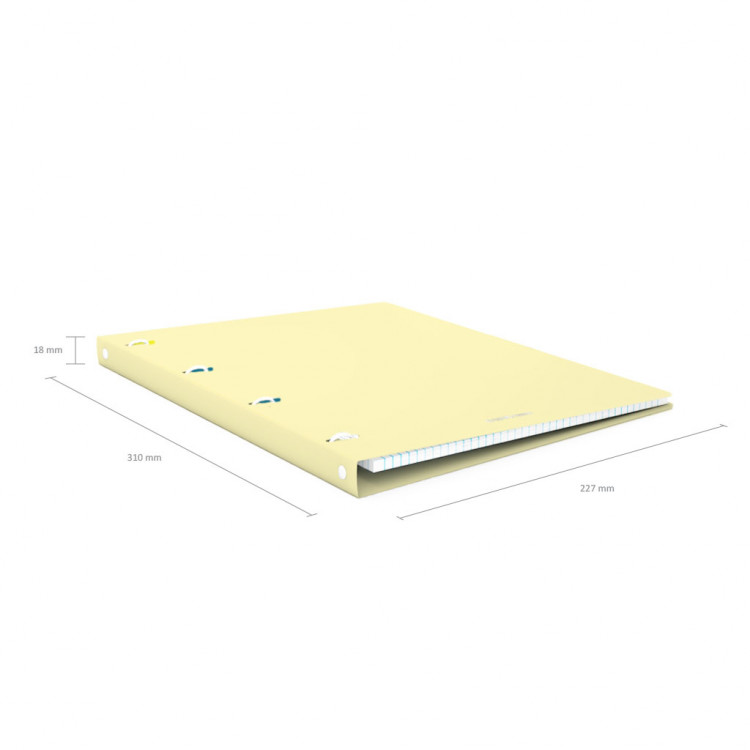 Тетратка со димензија A4 (210×297 mm). Цврста и долготрајна мат полипропиленска корица со текстура на песок. 80 листа од 60 гр хартија. Со квадратчиња – темно сини.