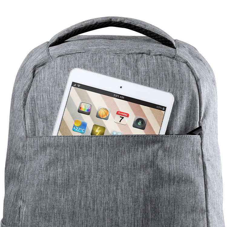 Ранец со заштита од крадење со повеќе прегради и џебови, прегради со перничиња за лаптоп (15″) и таблет (12″).