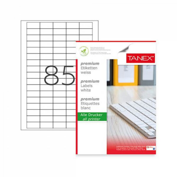 Самолепливи етикети за секаква употреба: за адресирање на пликови, пратки,изработка на декларации за производи, ставање на баркод или нумерирање. Погодни за печатење со ласерски и инк-џет печатачи. Изберете ја најсоодветната димензија на етикета, во зависност од големината на текстот кој треба да го отпечатите и големината на фонтот на букви кој ќе го употребите. Етикетите се изработени од високо квалитетна хартија која има моќ да го впива мастилото и истото да не се размачка со цел да добиете јасен и читлив текст.