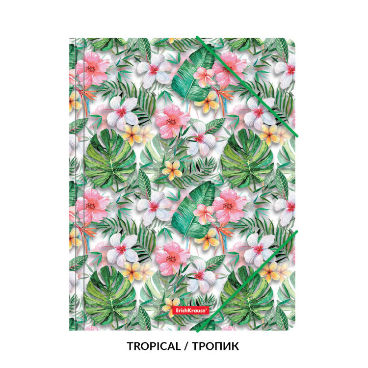 Папка со ластик А4 изработена од висококвалитетна пластика со текстура на површината „песок“, на која не се гледаат отпечатоци од прсти и мали гребнатини. Наменета за чување и транспорт на документи. Сигурни еластични прицврстувачи за брз пристап до хартија. Држи до 300 листови хартија. Големина – 246x320x5 mm, дебелина – 0,55 mm.