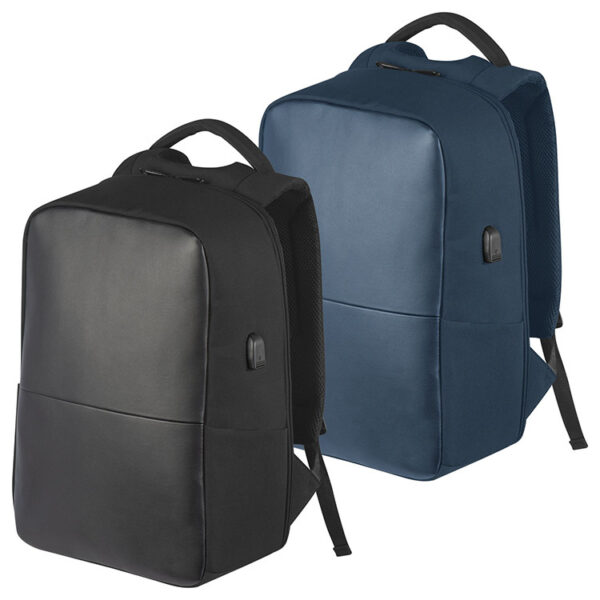 Ранец за лаптоп до 17″ изработен од полиестер 600D со висока густина. Поставен главен оддел со патент, кој содржи посебен поставен заштитен разделувач и неколку внатрешни џебови. Ранец со два странични џебови и два предни џебови, едниот со патент. Поставени ленти и грб, со ергиномска поддршка за грбот. 340 x 450 x 175 mm