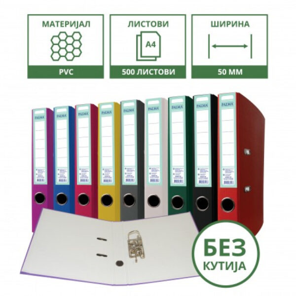 Папка за А4 документи со 4 прстени со капацитет за 150 листови и корици од флексибилен полипропилен 0,6мм.
