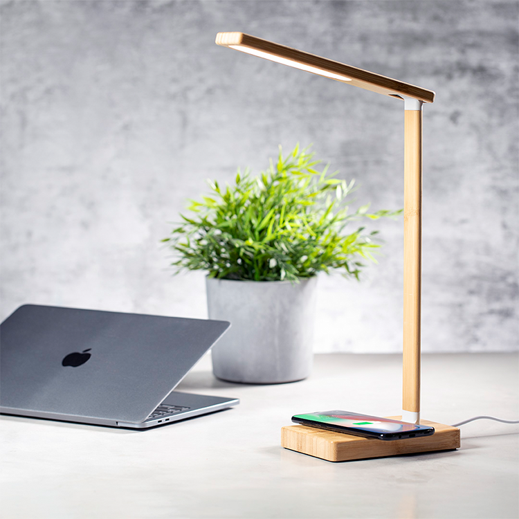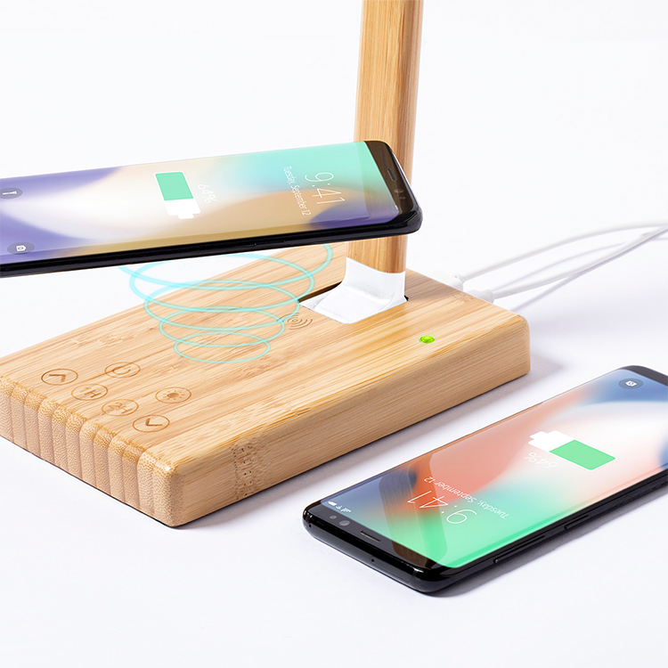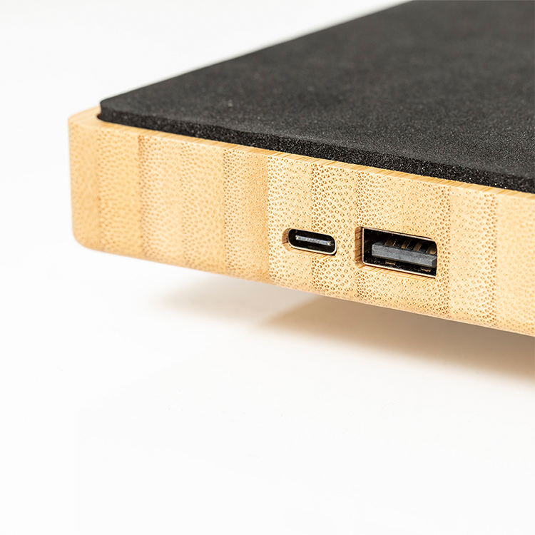 Еко бежичен полнач 10W бамбус со лед