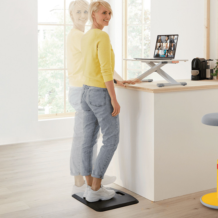 Ергономска подлога за стоење Leitz L-5369. Анти-замор подлога што го подобрува комфорот, држењето и циркулацијата при standing desk работа.