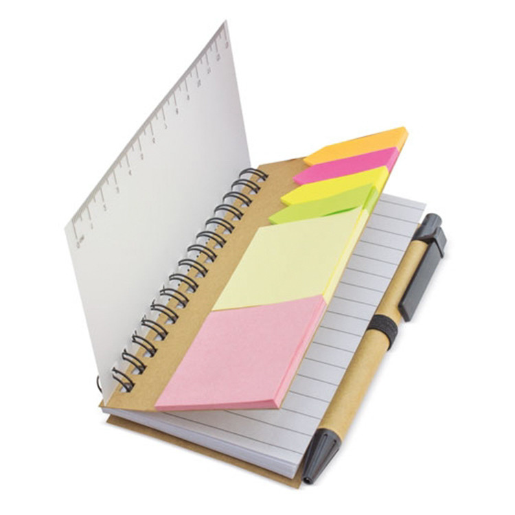 Notebook + Bookmark REX – спирален нотес со самолепливи обележувачи, линијар и пенкало. Практичен за канцеларија и учење.