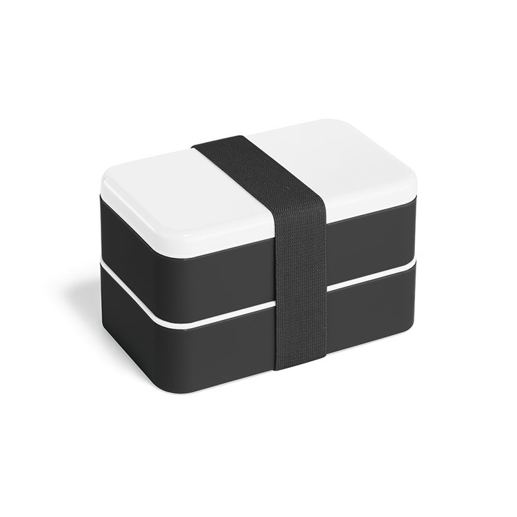Kутија за ручек со 2 прегради (по 680 мл) и една преграда. Вклучува 3 парчиња прибор за јадење: вилушка, нож и лажица. Се затвора со ластик и е погоден за микробранова печка (отстранете го капакот). 180 x 100 x 100 mm
