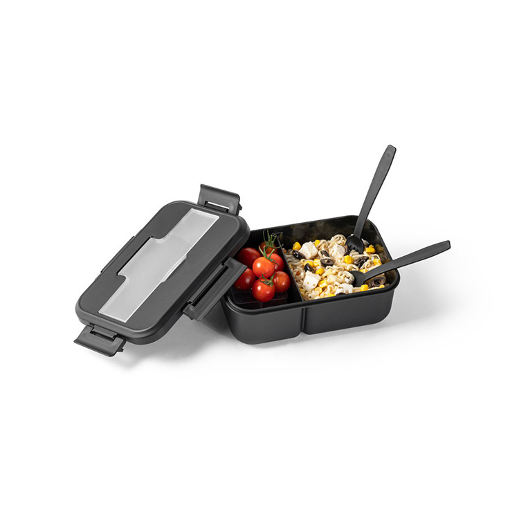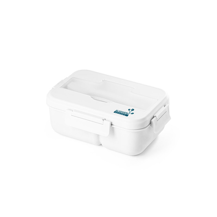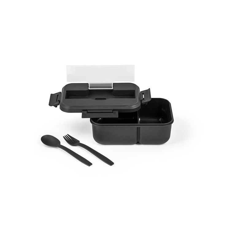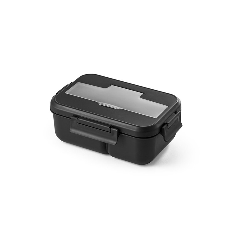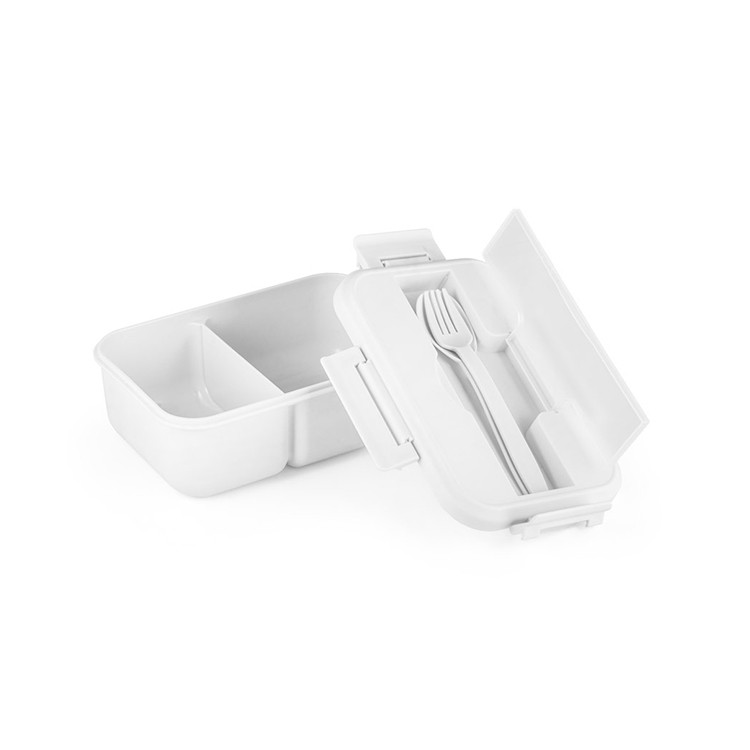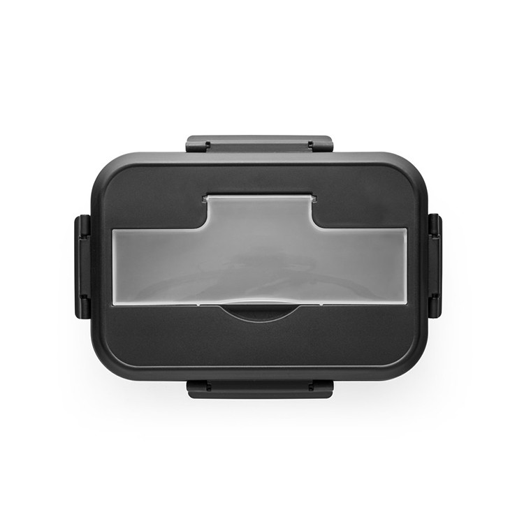 ПП херметичка кутија со капацитет до 1000 mL. Капакот има преграда за прибор за јадење (вклучен). Кутијата е погодна за микробранова печка, капакот треба да се отстрани. Не се препорачува за течности. 210 x 145 x 80 mm