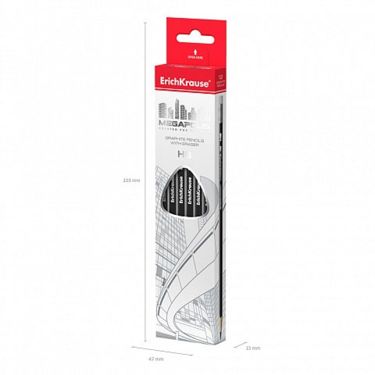 Ергономски триаголен црн оловно молив со гума од избрано дрво. Степен на цврстина: HB. Специјалната импрегнација на дрво и цврстото лепење со олово обезбедуваат висока отпорност на кршење. Мекото дрво и совршеното порамнување на оловото овозможуваат лесно острење со економично користење на моливот. Оловото со дијаметар од 2,2 mm не гребе хартија и не се распаѓа. Бришачот со средна цврстина е произведен од модерна, еколошка и хипоалергична термопластична гума (TPR) која не содржи ПВЦ. Должина на молив: 188 mm.