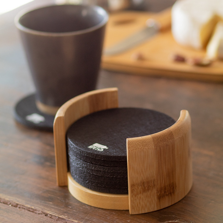 Овие кружни, еко-френдли подметачи, направени од бамбус во црна боја, доаѓаат во сет од 10 парчиња заедно со практичен држач за нивно чување. Тие се одличен избор за персонализација, што ги прави совршен промотивен подарок за вашите клиенти и пријатели. Комбинирајте ги со чаша и тефтер по ваш избор и создадете идеален сет за секоја пригода.