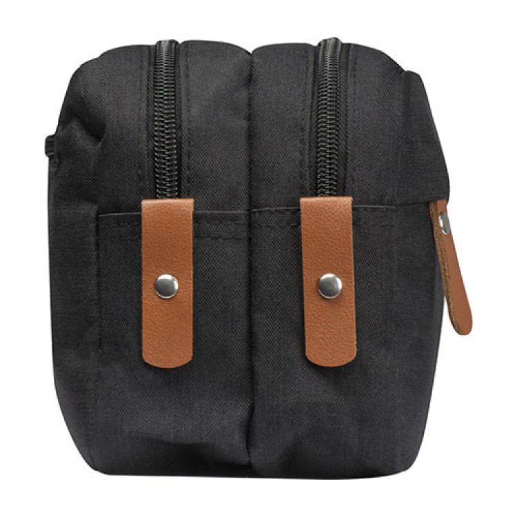 Практичен платнен несесер со мрежести прегради во внатрешниот дел и предна преграда што се затвора.