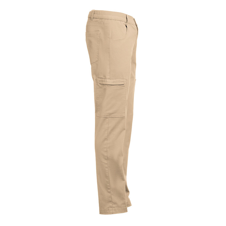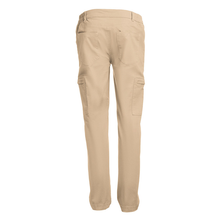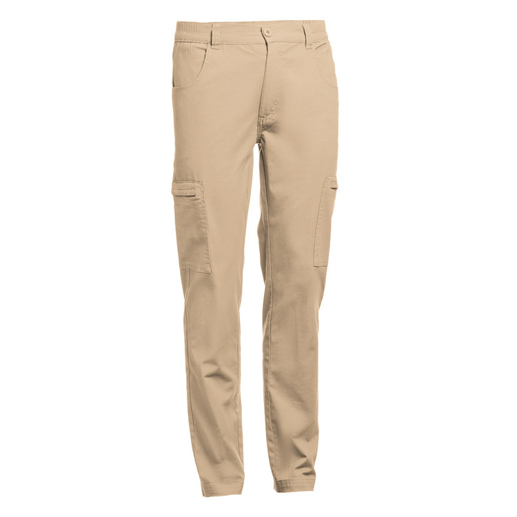 Овие машки пантолони се практични и стилски, со шест џебови (2 странично, 2 позади и 2 во пределот над колената) обезбедуваат доволно простор за чување на вашите предмети или алати. Изработени се од висококвалитетен материјал, со 98% памук и 2% еластин, што ги прави удобни за носење и флексибилни за движење. Дополнителниот ластик во горниот дел обезбедува дополнителна еластичност, комфор и растегливост на ширината во струкот, додека достапните бои – кафена, црна и сива, овозможуваат широк избор за вашиот стил. Тежината на материјалот од 240 грама ги прави погодни за носење во различни сезони.