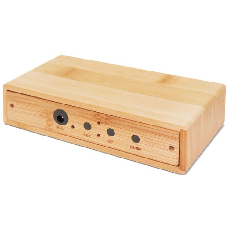 Часовник со полнач од бамбус,аларм и температура