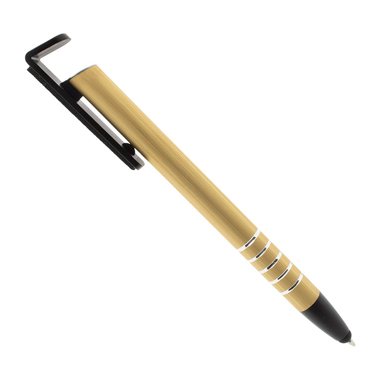 Ова модерно мултифункционално пенкало нуди повеќе од само пишување. Со држач за мобилен телефон и чистач за екран, тоа е одличен избор за практични и корисни подароци со лого.