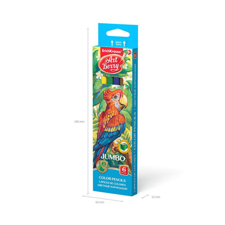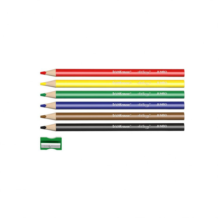 Боици дрвени 1/6 џамбо, триаголни Erich Krause се сет од 6 ергономски боици со живописни бои, идеални за деца и креативни активности.