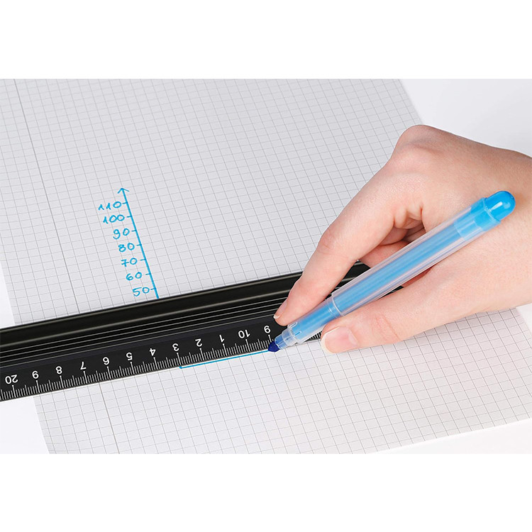 – Овој линеaр нема да се лизга при цртање или сечење благодарение на широката анти-лизгачка лента на самото дно