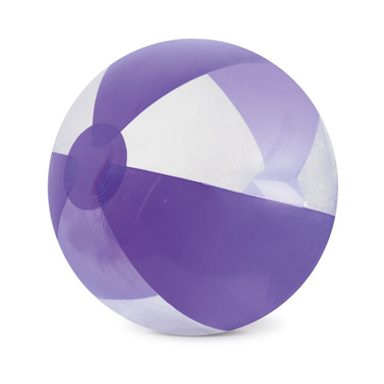 Класична топка за плажа на надувување, со риги во комбинација на виолетова, зелена, црвена и др.бои со бела боја. Совршен производ за вашата рекламна кампања, кој никогаш не смее да изостане во летната сезона.