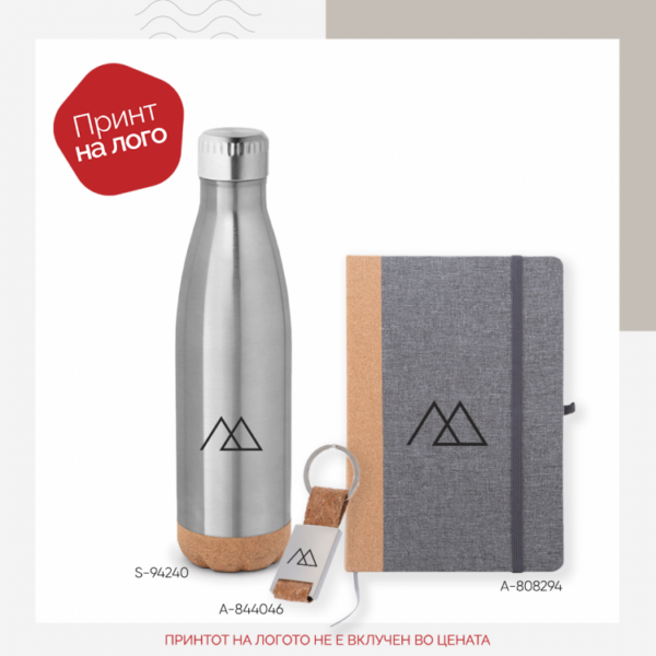 Даровниот сет 16 е составен од ранец со подлога од плута и термос со подлога од плута и капацитет од 500мл.