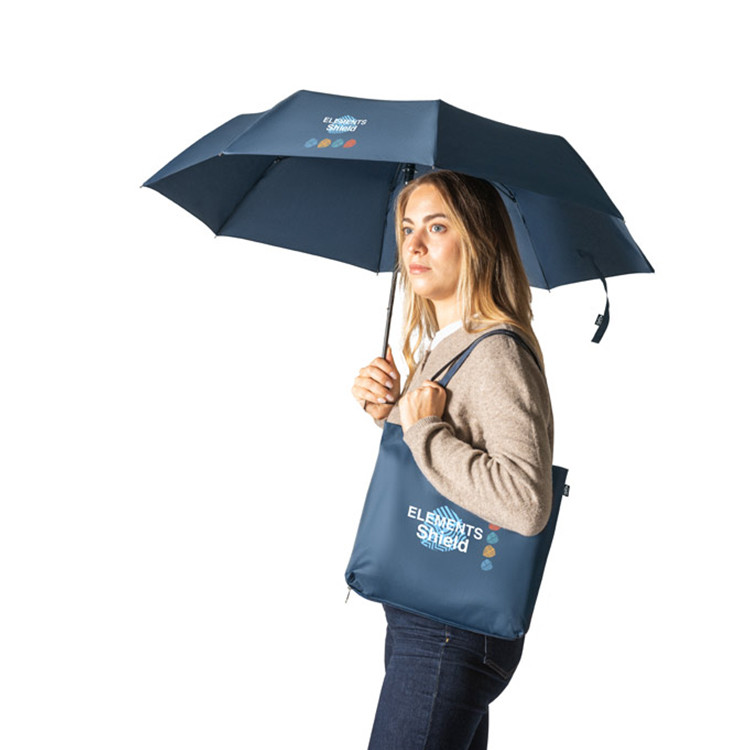 Инвентивен 2-вo-1 чадор со торба од 100% rPET. Автоматско отворање, windproof и практичен за патување или секојдневна употреба.