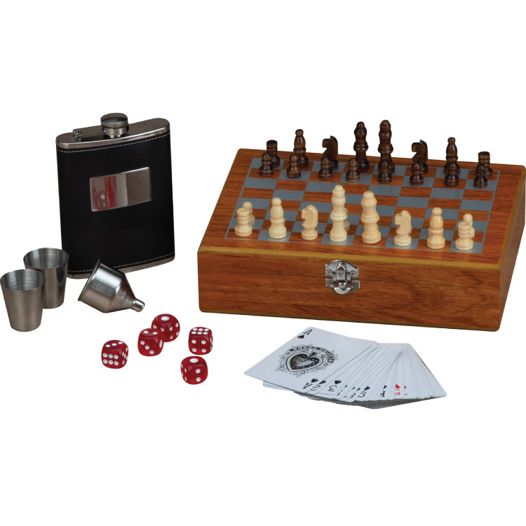 Сет игра во дрвена кутија, шах, карти, коцки,