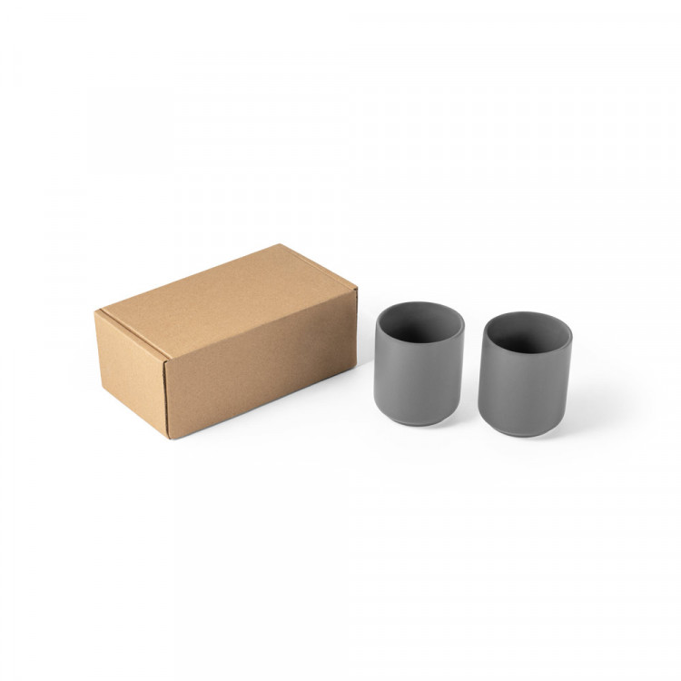 Сет од две керамички чаши со мат финиш. Капацитет од 280 mL. Спакувани во кутија за подарок од крафт хартија. ø74 x 85 mm