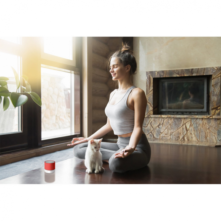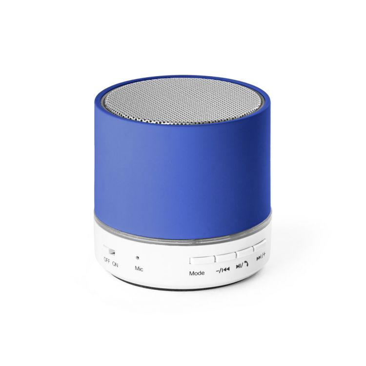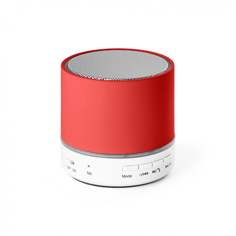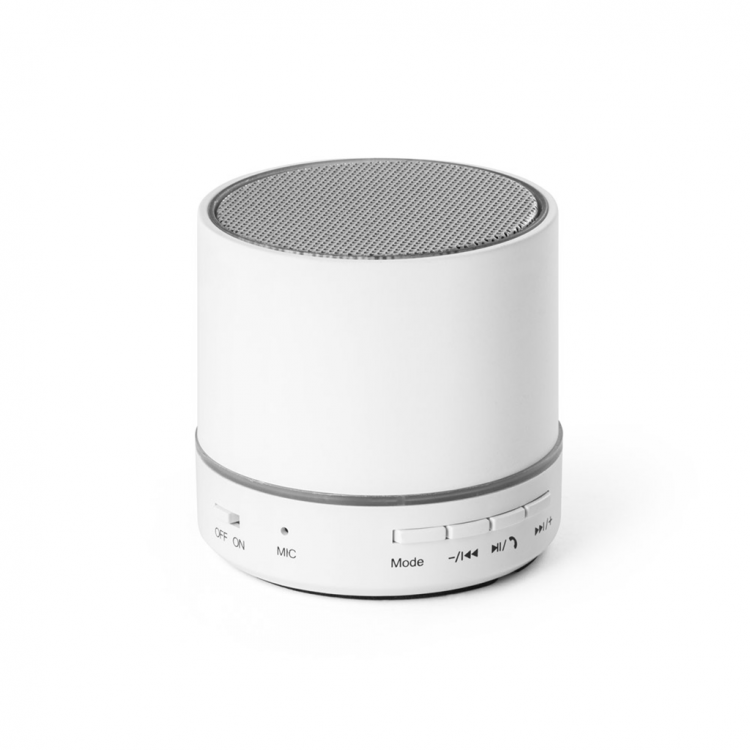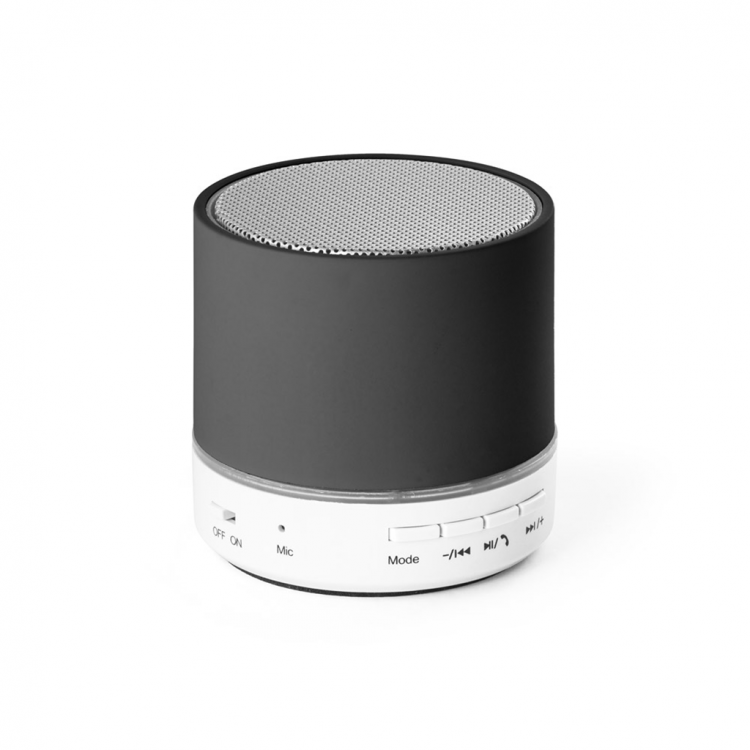 ABS звучник со гумен финиш со микрофон и блутут пренос, TF читач и моќ од 3W/4Ω. Овој звучник работи без полнач до 2 часа и има функции како што се одговарање на повици, подесување на звук и поврзување со плејлистата од вашиот мобилен уред. Овој производ содржи УСБ кабел за полнење. ø59 x 55 mm