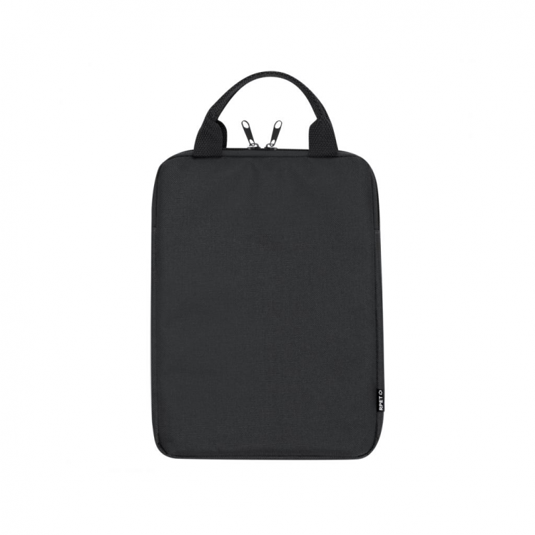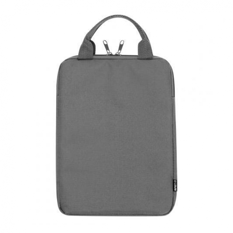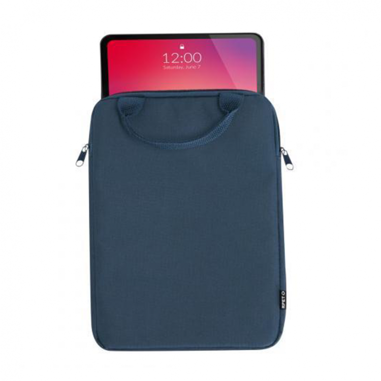 Практична футрола за таблет со рачки за носење изработена од RPET. Се отвара од самиот врв и се затвара со патент. Наменета за таблети до 10 инчи.