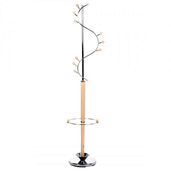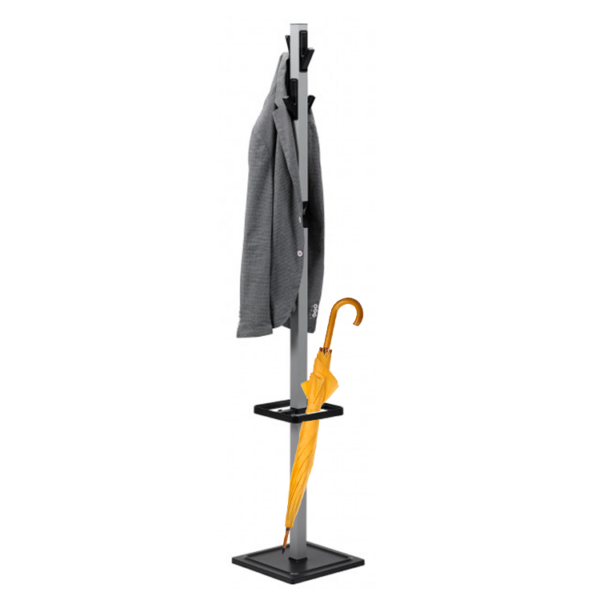 Закачалката Гарда е модерна, цврста и практична метална закачалка со декоративни елементи, дизајнирана да го организира вашето работно или домашно пространство со стил. Со висина од 173 см, оваа закачалка обезбедува доволно простор за палта, јакни, чанти и капути, а вграден држач за чадор и посебно место за собирање на капките ја прават идеална опција за сите сезони.