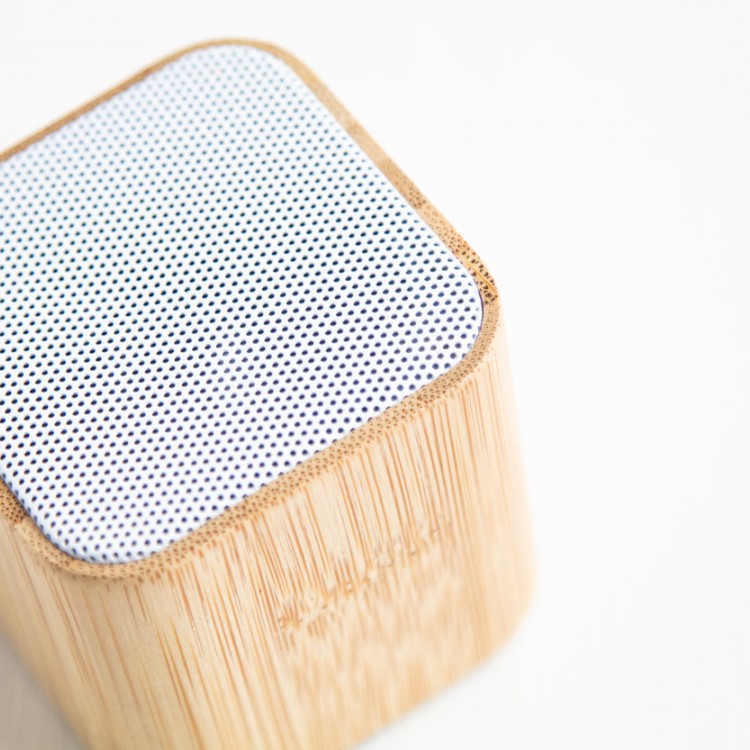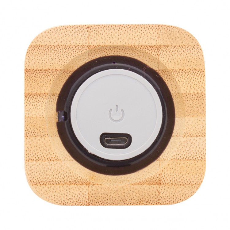 Еко блутут звучник изработен од бамбус со функција за повици и вградена батерија. Вклучува УСБ кабел за полнење.
