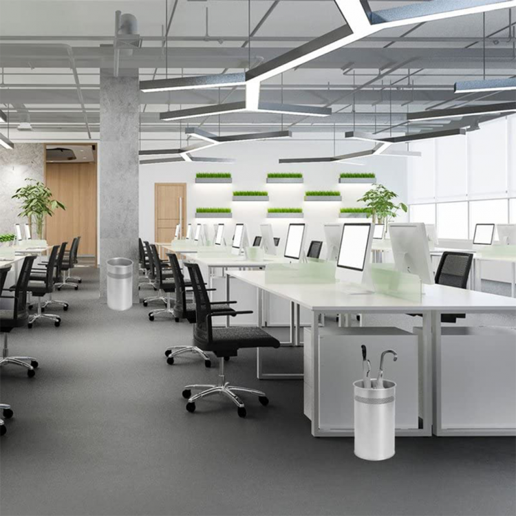 Со својот едноставен цилиндричен облик и декоративна перфорација, се вклопува во секој ентериер – од канцеларии и хотели до рецепции и домашни простори.