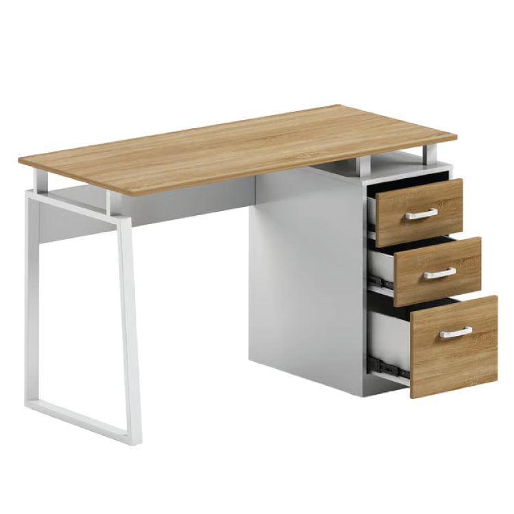 Модерно и стабилно работно биро RFG Shape Z со три фиоки и метална конструкција. Идеално за канцеларија, студентска или домашна работна соба.