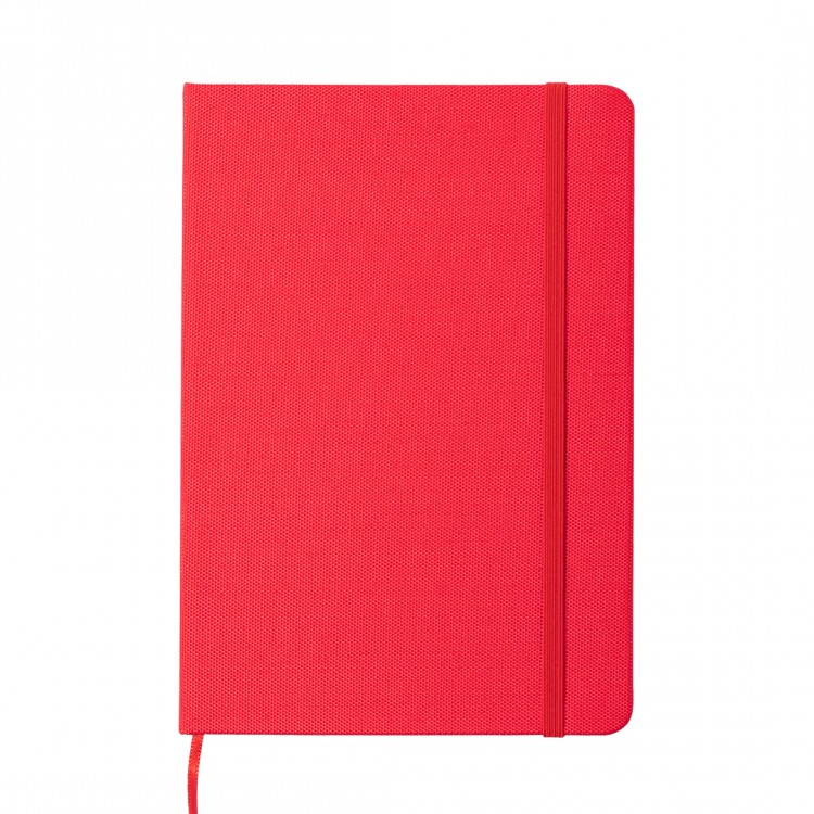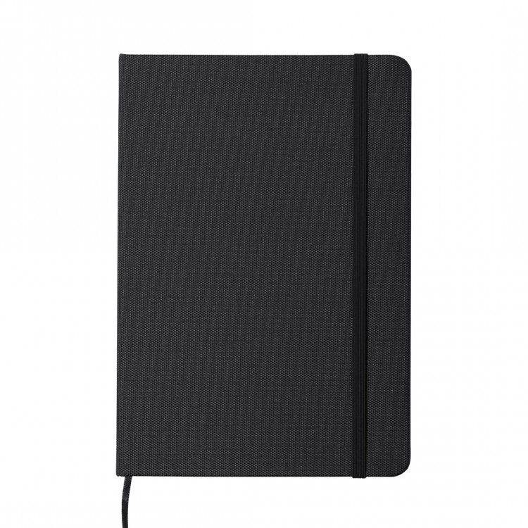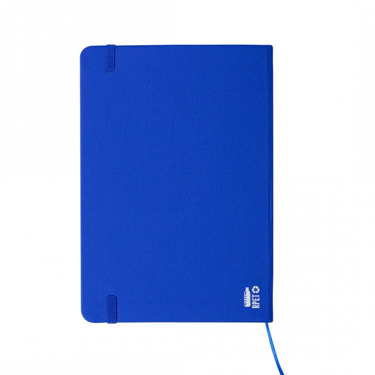 Современ и еколошки тефтер со корица изработена од RPET полиестер, материјал создаден од рециклирани пластични шишиња.Содржи 80 страници со линии, обележувач на страници, како и еластична гумичка за затворање во иста боја.Идеален е за канцелариска употреба, училиште, состаноци или како промотивен подарок со печатено лого.