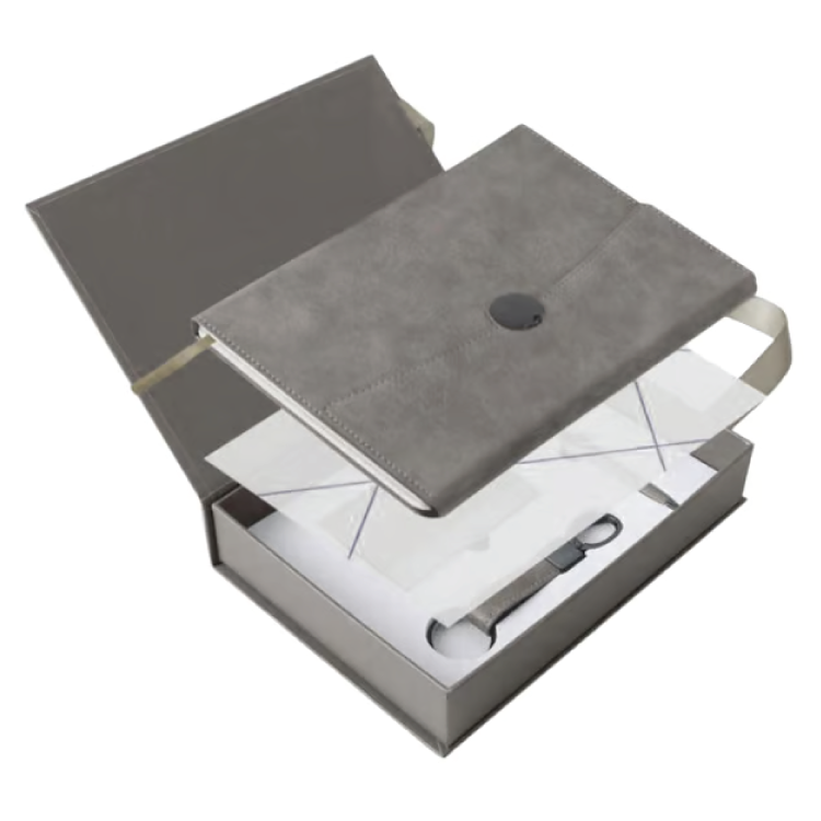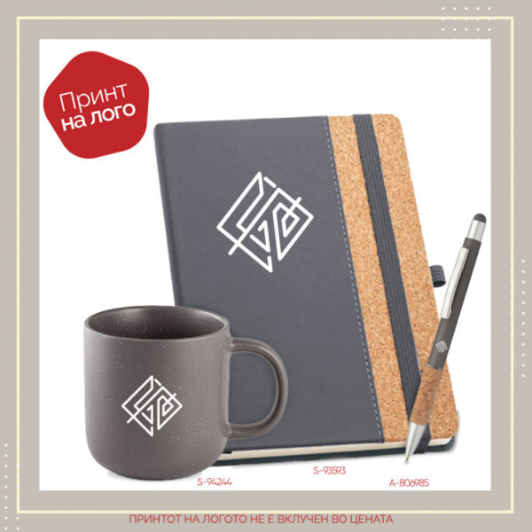 Елегантен подарок-сет со нотес A5, пенкало, визитар и приврзок. Совршен за корпоративни подароци, VIP клиенти и брендирање.