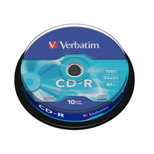 CD-RW Verbatim со капацитет од 700MB и брзина 8x-12x, во различни бои, погоден за повеќекратно снимање.