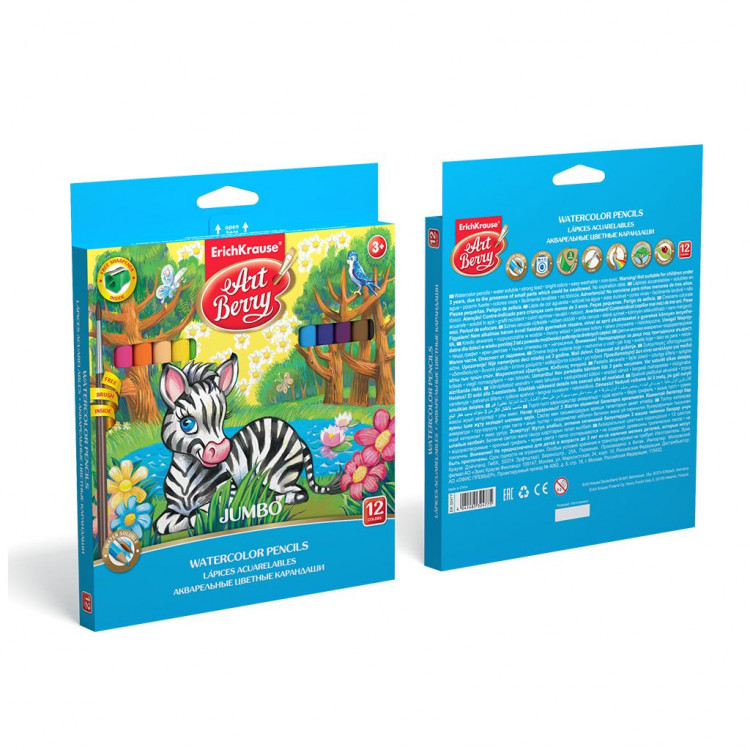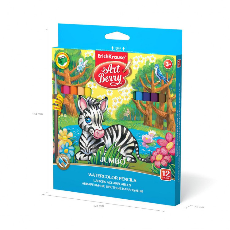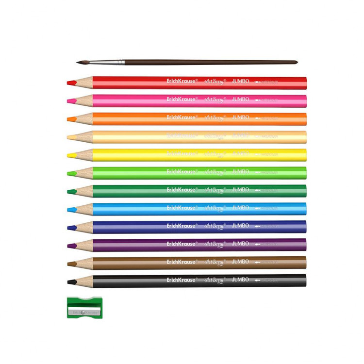 Сет од 12 дрвени џамбо акварел боици со четка Erich Krause, совршени за деца и креативно сликање.