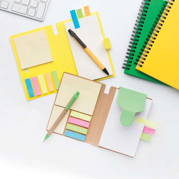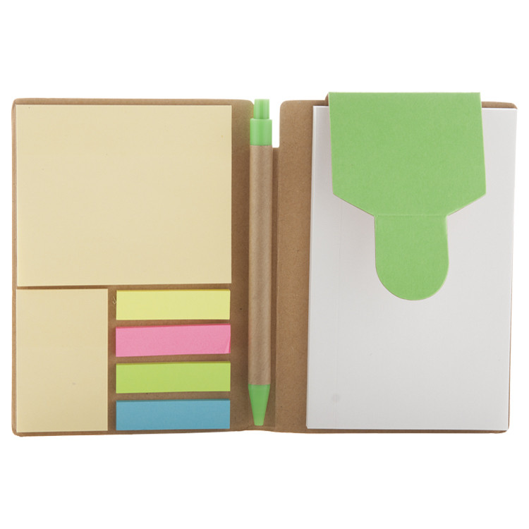 Сет со корица од рециклирана хартија, 70 листови и хемиско пенкало.