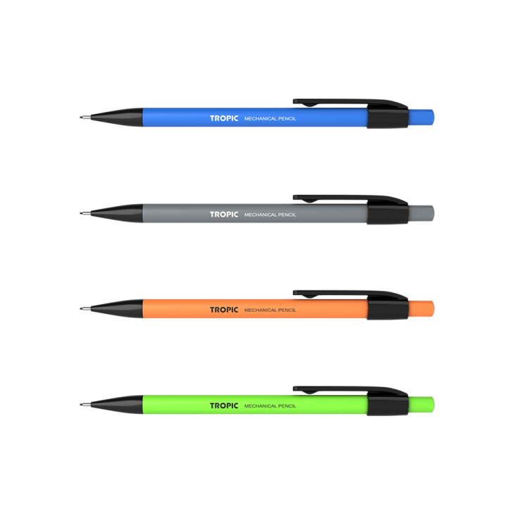 Телото на техничкиот молив е обложено со Soft Touch, мека надворешност во светли мат бои.